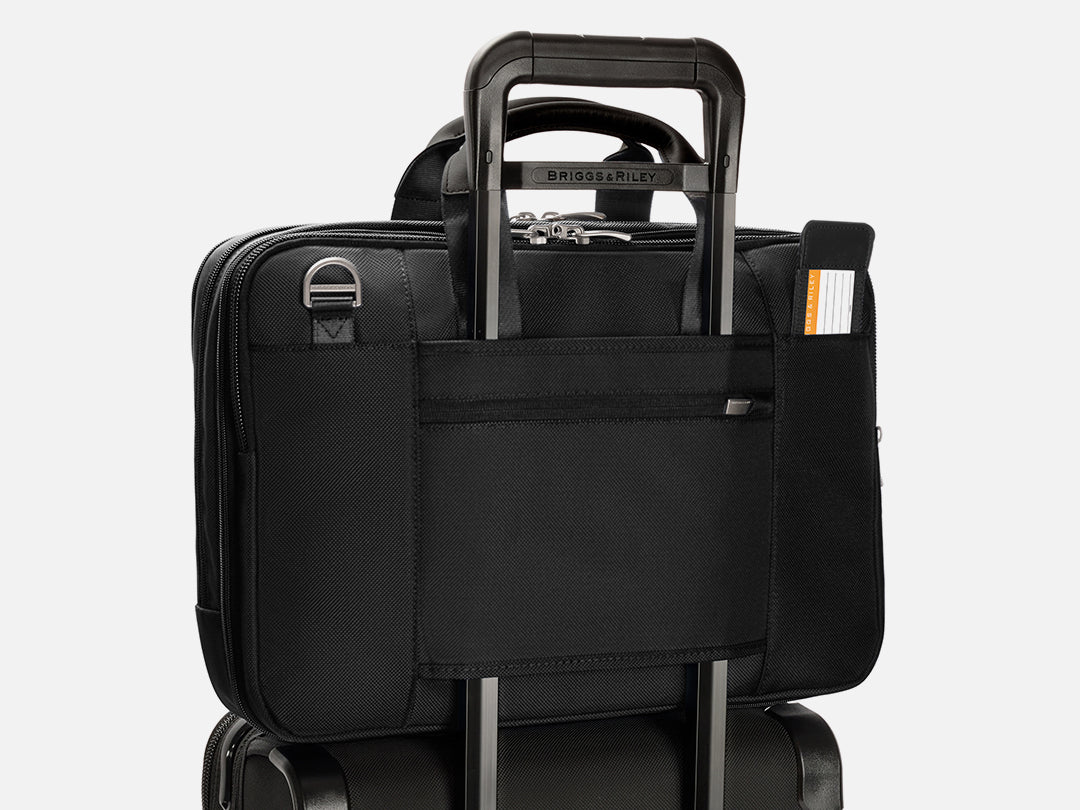 - Slip-through back panel allows bag to slide over any Briggs & Riley Outsider handle, comfortably transporting two bags as one.