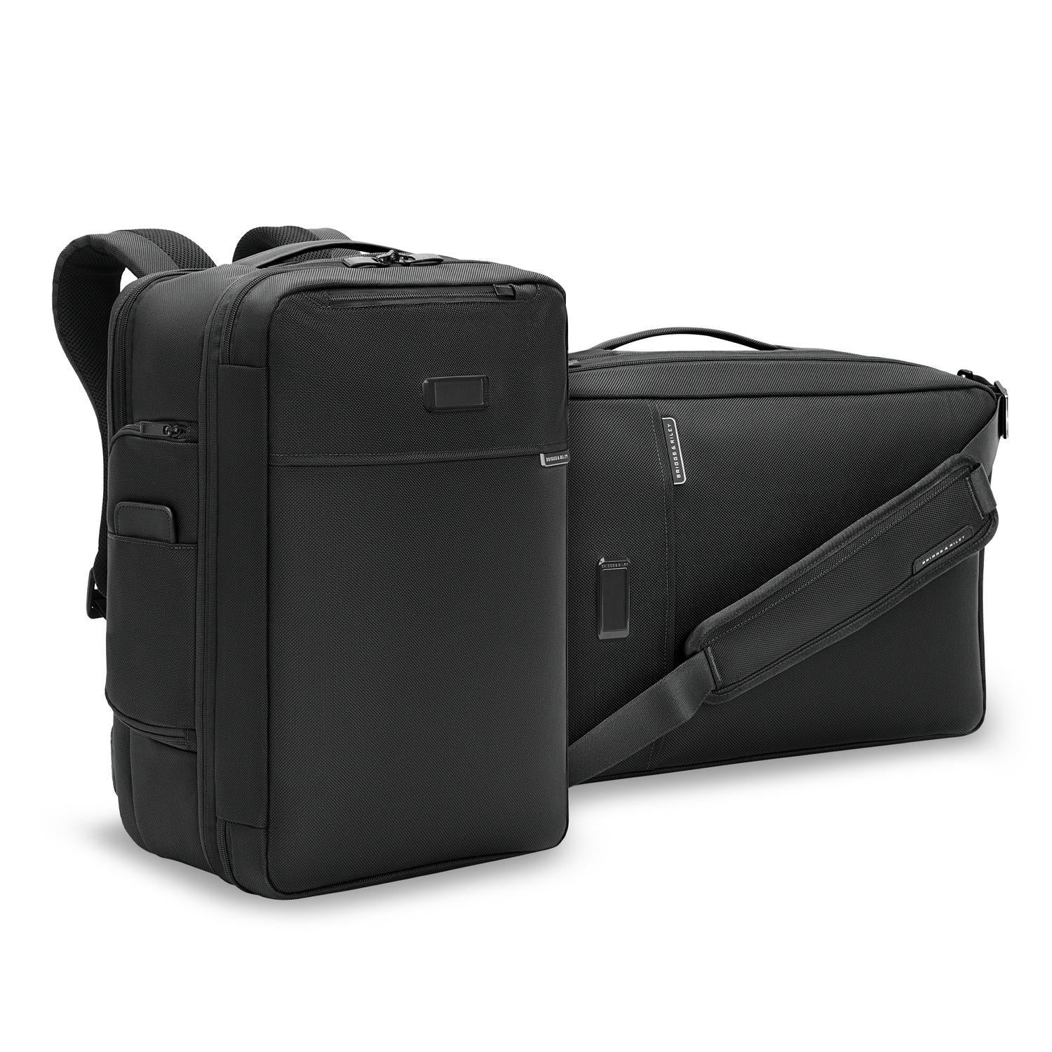 - Hybrid convertible design features hideaway backpack straps that tuck away when not in use.