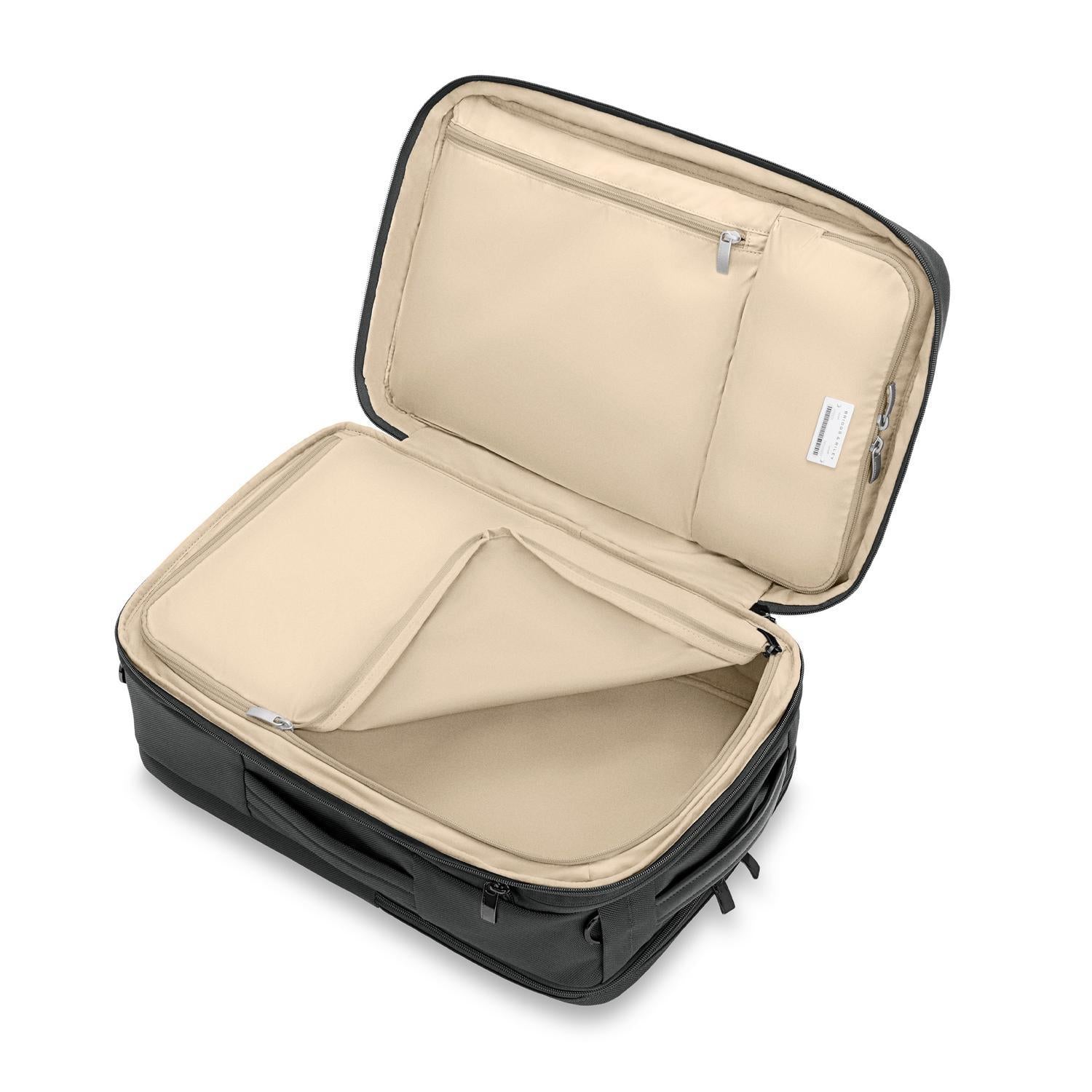 - Zip-around expansion creates 2.25” of extra packing space for on-demand flexibility.