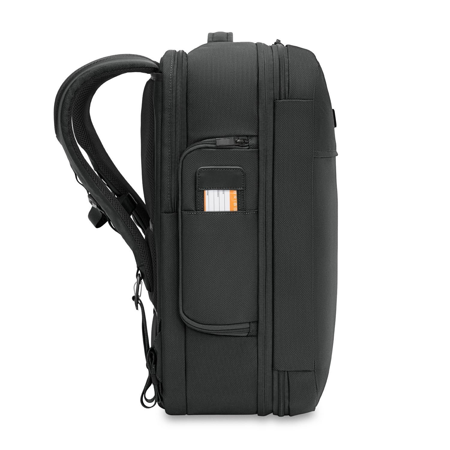 When mobility is your top priority, the Baseline Medium Convertible Backpack holds everything you need—and gives you three ways to carry it comfortably. Perfectly sized for short trips, a clamshell opening provides access to every nook and cranny, while padded tech compartments keep your devices protected. On longer trips, the slip-through back panel easily slides over any luggage handle.